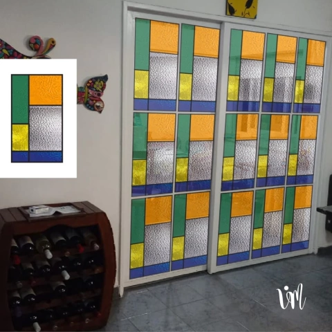 Lamina Autoadhesiva impresa. Diseño a elección sobre base transparente o sobre base esmerilada. Confeccionados a medida. Apta para interiores o exteriores. Fácil de colocar y Limpiar.